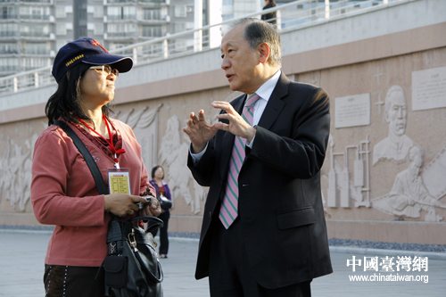 新黨主席郁慕明與來自臺灣的信眾進行親切的交談 。(中國臺灣網(wǎng) 陳睿 攝)