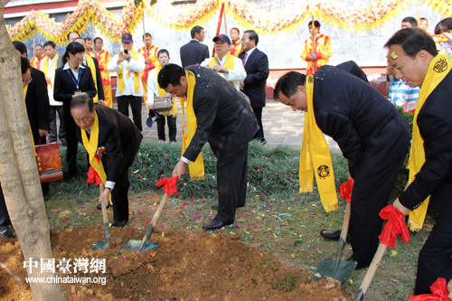 兩岸嘉賓共同栽植象征兩岸一脈情的“同根樹”。(中國臺灣網(wǎng) 陳睿 攝)