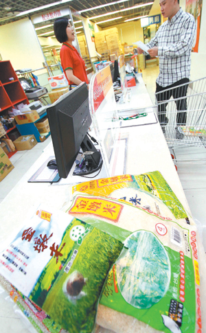 金墩米被驗出農(nóng)藥殘留超標(biāo),昨天有許多消費者到大賣場退換貨。(圖片來源:臺灣《聯(lián)合報》)