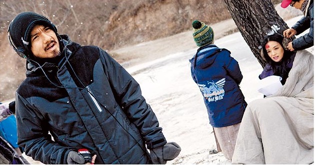 馮德倫發(fā)的照片是《太極1從零開始》場景,舒淇在大雪里倚躺樹干底,斷氣前對兒子說話,看得出當(dāng)時拍攝暫停,大伙正休息。身為導(dǎo)演的他掛著耳機(jī)站在前方,表情雖然嚴(yán)肅,不過認(rèn)真的男人最帥氣,即使他們置身寒冷野外,但他和舒淇眼神流泄出的卻盡是溫暖。