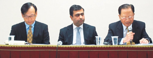 ING安泰投信董事長(zhǎng)鄒鴻圖(右起)、總經(jīng)理毛昱文、執(zhí)行副總賴(lài)峰彰昨天出面,為前基金經(jīng)理人不當(dāng)操作盈正案致歉,安泰投信破天荒賠償臺(tái)當(dāng)局基金與三檔共同基金約2.5億元(新臺(tái)幣,下同)虧損。圖片來(lái)源:臺(tái)灣《聯(lián)合報(bào)》