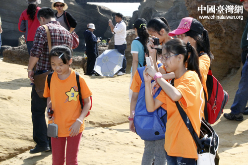 臺(tái)灣青少年在野柳地質(zhì)公園體驗(yàn)獨(dú)特自然風(fēng)貌。 (中國臺(tái)灣網(wǎng) 于斯文 攝)