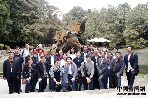 參訪團(tuán)團(tuán)在阿里山景區(qū)合影留念。(中國臺(tái)灣網(wǎng) 于斯文 攝)