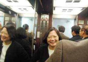 前民進(jìn)黨主席蔡英文從地下室搭乘電梯,直上民進(jìn)黨8樓。圖片來自臺(tái)灣今日新聞網(wǎng)