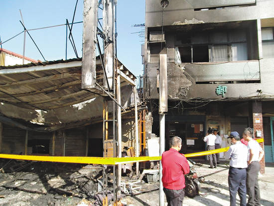 沙發(fā)店大火,隔壁郵局也遭波及,不僅外觀燒黑,電線也燒毀,無法營業(yè)。(圖片來自臺灣“聯(lián)合新聞網(wǎng)”)