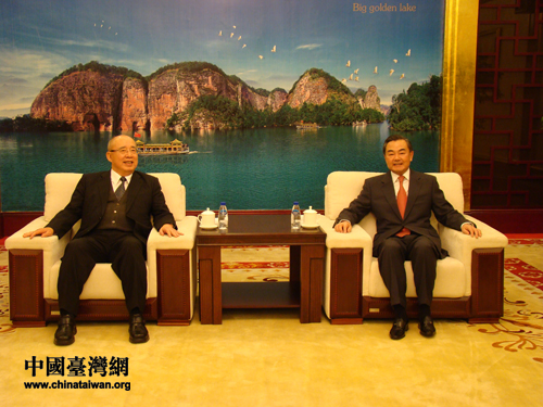 中共中央臺(tái)辦主任王毅20日在福建三明會(huì)見中國國民黨榮譽(yù)主席吳伯雄。圖片來源:福建省臺(tái)辦