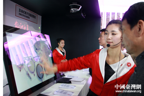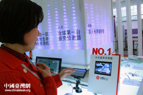 2012北京臺(tái)灣名品博覽會(huì)22日上午在北京開(kāi)幕,臺(tái)灣精品館此次攜十項(xiàng)“全球第一”再度亮相京城。圖為工作人員演示全球第一臺(tái)疲勞偵測(cè)器.(中國(guó)臺(tái)灣網(wǎng) 楊麗 攝)
