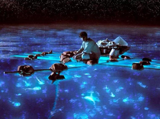 《少年P(guān)I的奇幻漂流》畫面美不勝收,蘇瑞吉沙瑪飾演的PI漂流海上,驚險(xiǎn)求生。(圖片來自網(wǎng)絡(luò))