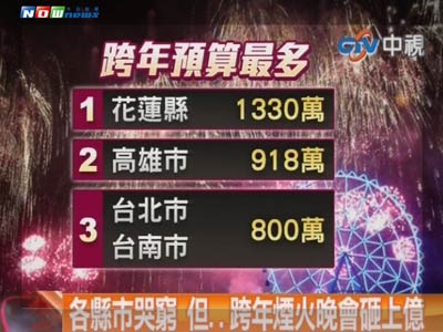雖然各縣市政府哭窮,但跨年煙火晚會(huì)預(yù)算持續(xù)編列,第一名花蓮縣高達(dá)1330萬(wàn)新臺(tái)幣。(圖片來(lái)源:臺(tái)灣“今日新聞網(wǎng)”)