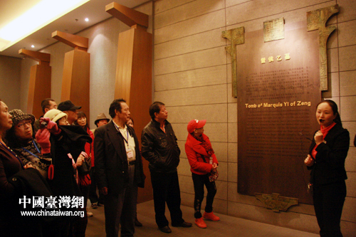 導(dǎo)覽正在向嘉賓介紹曾侯乙墓相關(guān)文物(中國臺灣網(wǎng) 黃艷艷 攝)