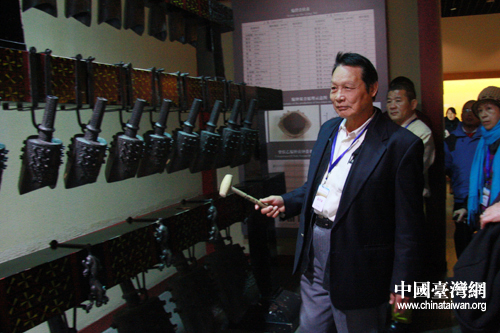 臺灣嘉賓嘗試敲打編鐘(中國臺灣網(wǎng) 黃艷艷 攝)