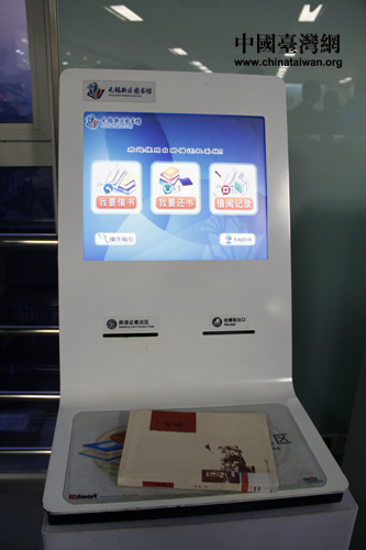 自助借還書機(jī)。讀者可將多本書籍一起放置在掃描機(jī)上,短時間內(nèi)完成借還書手續(xù)。(中國臺灣網(wǎng) 馬迪 攝)