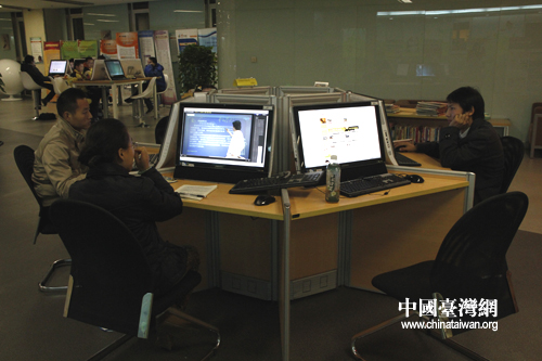 視聽區(qū)提供多種教學(xué)視頻課程。(中國(guó)臺(tái)灣網(wǎng) 馬迪 攝)