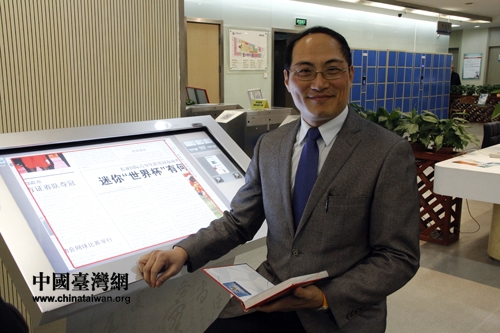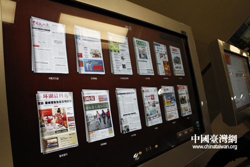 擁有超大觸控液晶顯示屏的電子閱報(bào)器。(中國(guó)臺(tái)灣網(wǎng) 馬迪 攝)