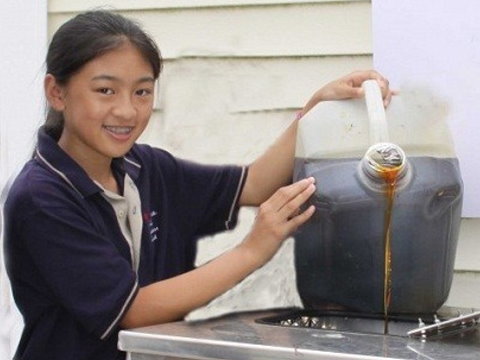 華裔少女林心瑜推動的“化油脂為燃料”社區(qū)服務(wù)項目,成為各界矚目的焦點。(圖片來自《赫芬頓郵報》)