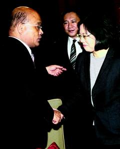 民進黨主席蘇貞昌(左)、前主席蔡英文(右)兩 人互拼下鄉(xiāng)、走基層、主導議題,黨內形容是“兩個太陽”的競爭。圖片來自臺灣《聯(lián)合報》