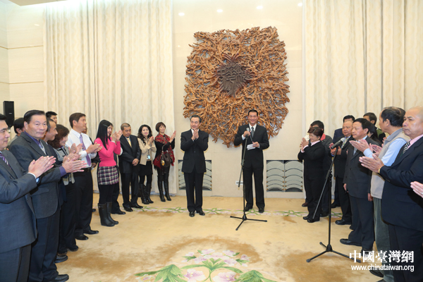 中共中央臺辦、國務(wù)院臺辦主任王毅今天下午在北京人民大會堂會見了臺灣鄉(xiāng)鎮(zhèn)市民代表會聯(lián)合總會蔡詠锝一行。圖為蔡詠锝發(fā)表致辭。(中國臺灣網(wǎng) 于斯文 攝)
