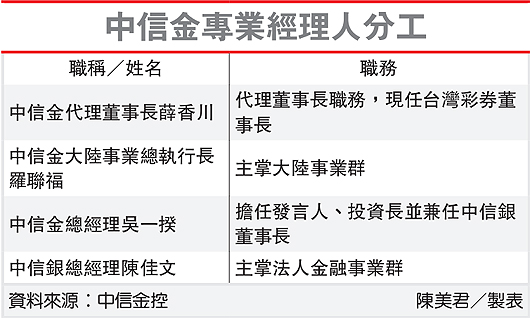 “中信金”經(jīng)理人分工表(圖片來自臺灣《經(jīng)濟(jì)日報》)