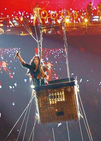 唱high的阿妹登上熱氣球繞場(chǎng)致意 噱頭十足(圖片來(lái)源:臺(tái)灣媒體)