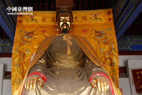 頭部和手部被鍍金的劉備像。(中國臺(tái)灣網(wǎng) 焦源源 攝)