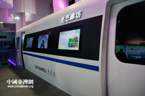 固安規(guī)劃館內(nèi)的“生態(tài)廊坊”列車。(中國(guó)臺(tái)灣網(wǎng) 焦源源 攝)