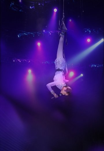 楊丞琳被倒吊至舞臺3米高,完美演出“倒吊獻唱”(圖片來源:臺灣媒體)