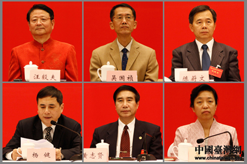 12月15日上午,臺灣民主自治同盟第九次全盟代表大會在京閉幕。會議期間舉行的臺盟第九屆中央委員會第一次全體會議選舉產(chǎn)生了由24人組成的第九屆中央常務(wù)委員會,林文漪當(dāng)選主席,汪毅夫、吳國禎、陳蔚文、楊健、黃志賢、蘇輝當(dāng)選副主席。 (中國臺灣網(wǎng) 王怡然 攝)