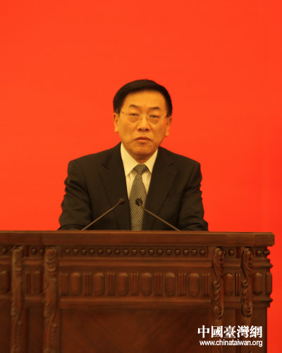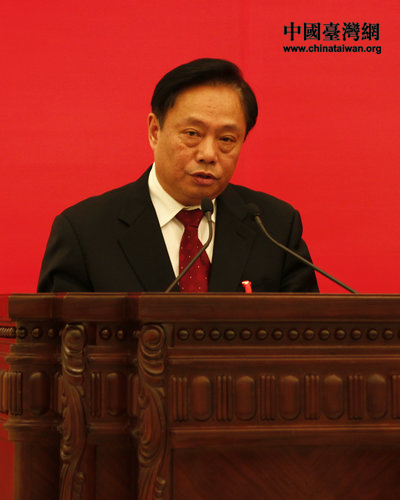 中華全國臺(tái)灣同胞聯(lián)誼會(huì)會(huì)長梁國揚(yáng)代表全國臺(tái)聯(lián)第八屆理事會(huì)作工作報(bào)告。(中國臺(tái)灣網(wǎng) 郭瑩瑩 攝)