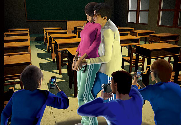 新北市一名學(xué)生家長指出,上周五早上,她拿起兒子的手機(jī),本欲打開相簿察看兒子平日交友狀況,不料驚見學(xué)生在教室內(nèi)的性愛照,經(jīng)詢問,兒子表示照片中的男女主角是同校學(xué)生,月初某日趁著下午校內(nèi)集會時,因身兼學(xué)校干部不須參加集會,在另3名同學(xué)起哄下,大膽在教室內(nèi)當(dāng)眾做愛,過程全被圍觀同學(xué)拍下,并在校園流傳。