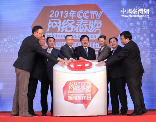 2013年CCTV網(wǎng)絡(luò)春晚發(fā)布會(huì)與會(huì)領(lǐng)導(dǎo)按下主題活動(dòng)啟動(dòng)按鈕。(中國(guó)臺(tái)灣網(wǎng) 許秋玥 攝)