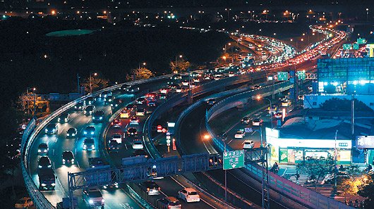臺(tái)北市高架橋上行駛中的車輛(圖片來(lái)源:臺(tái)灣媒體)