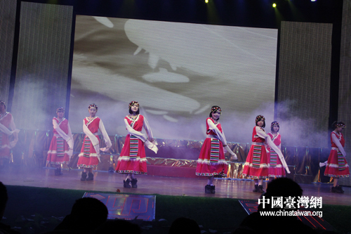 在西柏坡中學(xué)“感恩的心——元旦聯(lián)歡會”上,同學(xué)們表演的藏族舞蹈“歡樂的海洋”(中國臺灣網(wǎng)記者 蕪?fù)?攝)