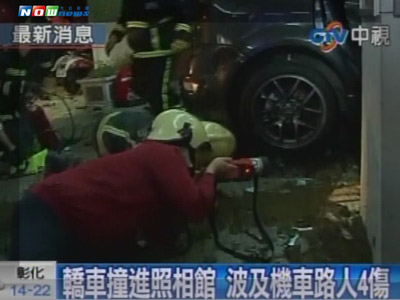 中國(guó)臺(tái)灣網(wǎng)1月4日消息 據(jù)臺(tái)灣今日新聞網(wǎng)報(bào)道,臺(tái)灣高雄市苓雅區(qū)和平路上3日晚間7時(shí)左右,發(fā)生一起重大車禍,一輛轎車行經(jīng)十字路口時(shí),先是撞上在等紅綠燈的4輛摩托車,接著又沖撞進(jìn)一旁的照相館,共造成7人輕重傷。其中一名騎乘摩托車的婦人當(dāng)場(chǎng)被撞斷腿陷入昏迷,送往醫(yī)院后在加護(hù)病房觀察。