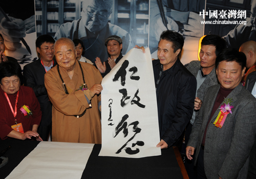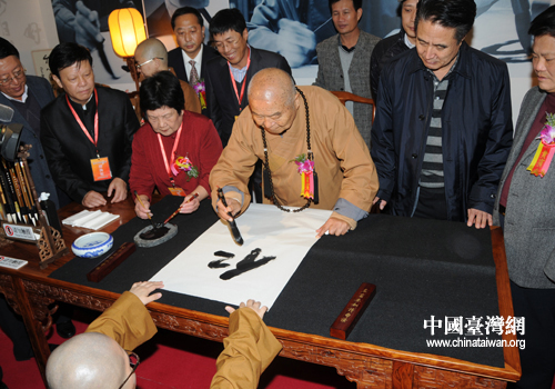 星云大師現(xiàn)場揮毫,寫下多幅墨寶。(中國臺灣網(wǎng) 馬萌攝)