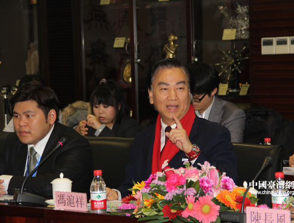 擔(dān)任榮譽(yù)團(tuán)長的臺灣中華兩岸和平促進(jìn)會會長馮滬祥在會上發(fā)表講話。 (中國臺灣網(wǎng) 芮益芳 攝)