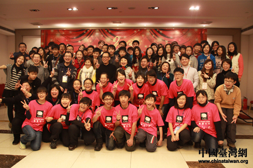 中國(guó)臺(tái)灣網(wǎng)1月25日北京消息 1月24日晚,由宋慶齡基金會(huì)主辦,臺(tái)灣夏潮基金會(huì)、臺(tái)灣十大杰出青年基金會(huì)、臺(tái)灣“中國(guó)青年大陸研究文教基金會(huì)”承辦的“情漫海峽·愛(ài)聚兩岸”青年學(xué)生大聯(lián)歡活動(dòng)在北京舉行。宋慶齡基金會(huì)聯(lián)絡(luò)部部長(zhǎng)陳愛(ài)民、臺(tái)灣夏潮基金會(huì)董事長(zhǎng)宋東文、十大杰出青年基金會(huì)諮商顧問(wèn)陳忠寅以及兩岸師生、志愿者近200人出席了聯(lián)歡會(huì)。