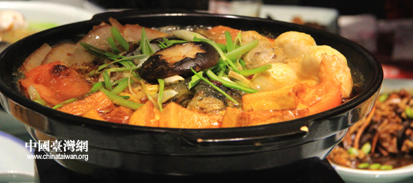 火鍋永遠(yuǎn)是用來(lái)壓軸的。沙茶是閩南臺(tái)灣一代民眾喜愛(ài)的口味。熱氣騰騰的火鍋中,用臺(tái)灣秘制沙茶醬烹煮臘肉、魚(yú)丸、貢丸、香菇,再加上北京密云水庫(kù)的水庫(kù)魚(yú)。最大程度還原了原汁原味的“臺(tái)菜”味道。 (圖文/李徽)