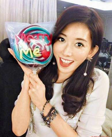 林志玲手拿一支寫(xiě)有“Marry Me”的棒棒糖(圖片來(lái)自臺(tái)媒)