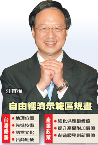 江宜樺續(xù)推自由經(jīng)濟示范區(qū)。(來源:臺灣《聯(lián)合報》)