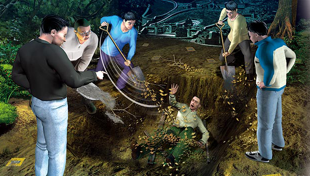 “古墓派”討債示意圖。(圖片來自臺媒)