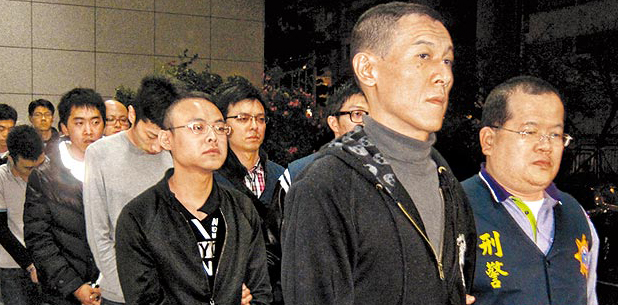 警方逮捕案件主嫌竹聯(lián)幫風(fēng)堂堂主張國強(右二)等8人,昨訊后移送臺北地檢署。(圖片來自臺媒)