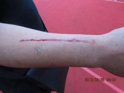 警察手臂遭割傷。圖片來(lái)自臺(tái)灣媒體