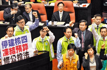 中國臺灣網(wǎng)2月27日消息 據(jù)臺灣《中國時(shí)報(bào)》報(bào)道,臺當(dāng)局“行政院長”江宜樺日前宣布將核四停建與否交付全民“公投”,再為延燒多時(shí)的核四爭議投下強(qiáng)力震撼彈,臺灣“立法院院會”昨(26日)天也因此近乎停擺。經(jīng)多次協(xié)商后,朝野黨團(tuán)最終達(dá)成共識,核四工程除已發(fā)包及安全檢測工作外,暫停施工;“公投”之前,核四不得辦理追加預(yù)算或放置燃料棒。至于“公投”門檻是否下修,則需于舉行“公投”前,由朝野協(xié)商決定。