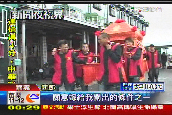 據(jù)臺(tái)灣TVBS電視臺(tái)報(bào)道,新郎穿大紅禮服騎著白馬,后跟8個(gè)嬪妃,還有一個(gè)8人大花轎抬著新娘;幾乎讓圍觀民眾誤以為在演《甄嬛傳》,實(shí)際上卻是一個(gè)真真正正的婚禮。