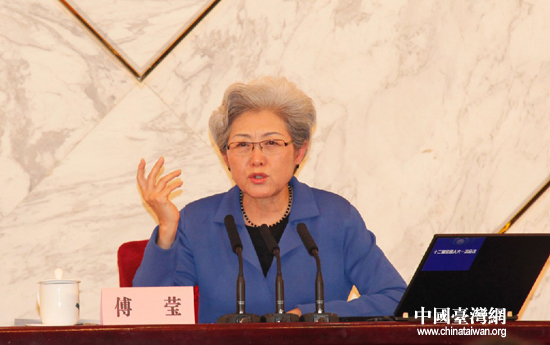 十二屆全國人大一次會議新聞發(fā)言人傅瑩回答記者提問。(中國臺灣網(wǎng) 何建峰 攝)