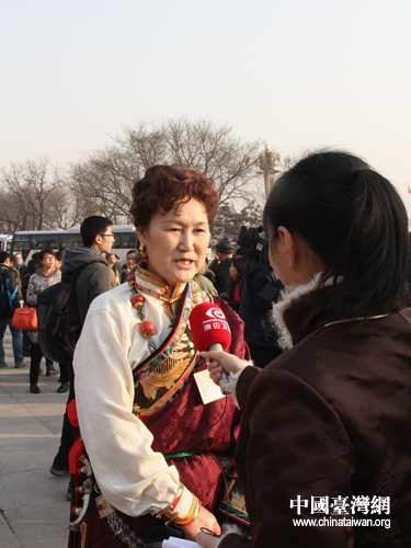 入場前少數(shù)民族人大代表接受采訪。(中國臺灣網(wǎng) 何建峰 攝)