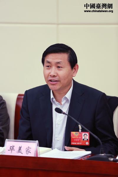 農(nóng)業(yè)部總經(jīng)濟(jì)師畢美家在臺盟、臺聯(lián)界別分組討論時表示,兩岸在農(nóng)業(yè)市場方面有相當(dāng)廣闊的合作空間。(中國臺灣網(wǎng) 于斯文 攝)