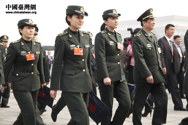 解放軍代表、中國航天女英雄劉洋(左二)步入人民大會堂。(中國臺灣網(wǎng) 何建峰 攝)