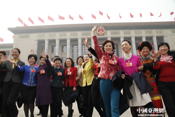 四川代表團(tuán)中的部分女性代表。(中國臺灣網(wǎng) 何建峰 攝)