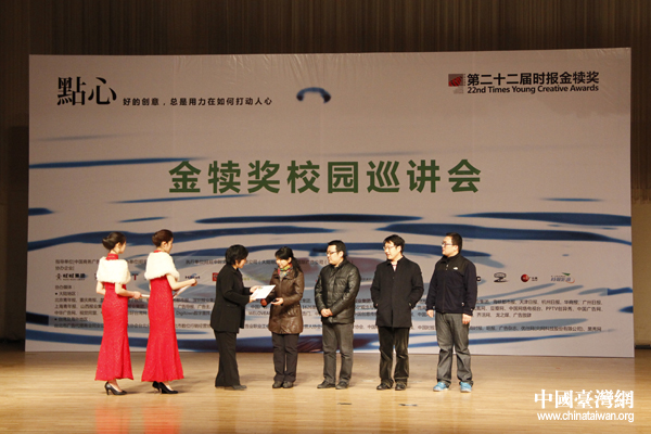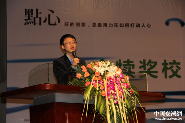 活動籌委會代表中國傳媒大學廣告學院楊懿老師發(fā)表致辭。(中國臺灣網(wǎng) 張潔 攝)
